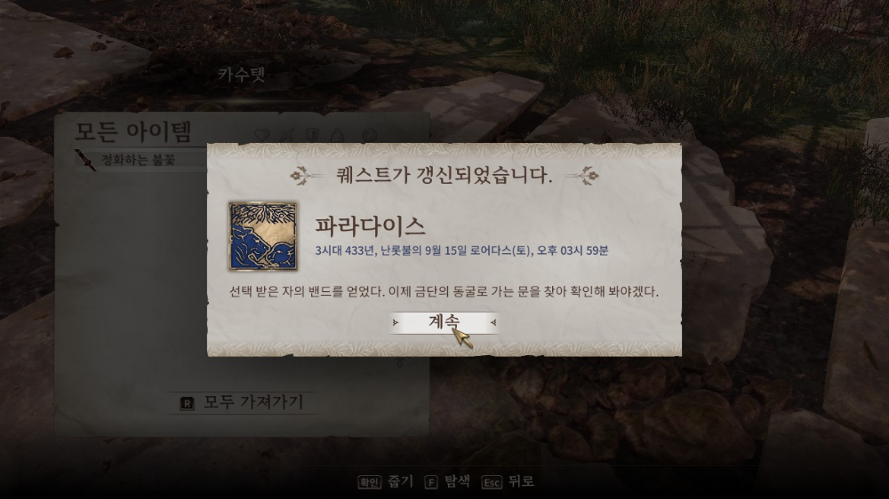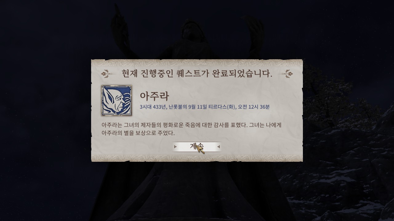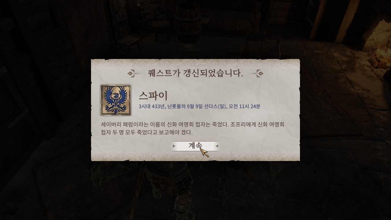 처음 입장하면 이릴레스가 이방인인 주인공에게 다가와 용건을 묻는다.