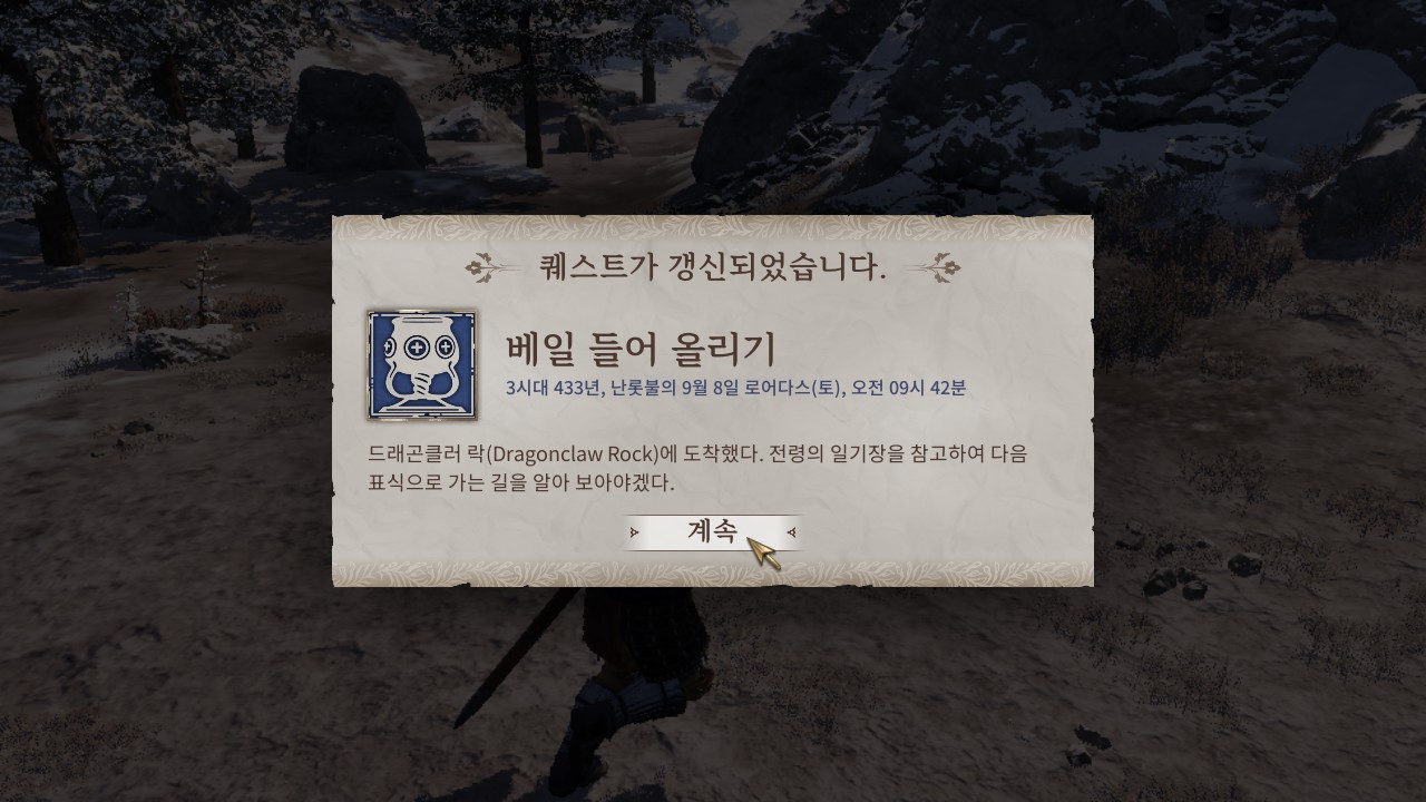 드래곤 둥지를 발견했다. 용언을 습득하려고 했으나 위습들이 존재하는 건 무슨 의미인지 알고 더 가까이 가지 않았다