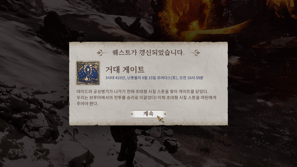 아직 게임상에서 드래곤들이 출현하지는 않으나, 알두인이 각지에서 드래곤들을 부활시키는 시점이라서 화이트런이 봉쇄돼 있다.